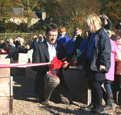 Alan Titchmarsh opening the School kitchen garden. The School is in the background.